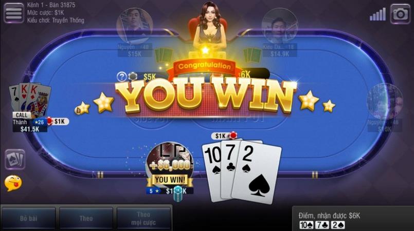 - Úp bài (Fold): Bỏ cuộc nếu cảm thấy bài quá yếu. Người chơi mất tiền sàn.